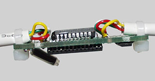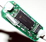 I figured "No Big Deal", and continued with the dissasembly. But when I got the metal panels off, I saw a small white heatshink-wrapped package. Being ever-curious, I sliced the heatshrink open. I found a little circuit board inside.