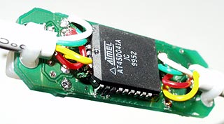 Being an EE by trade, this piqued my curiosity considerably. On one side of the board, one Atmel AT45D041A four megabit Flash memory chip.