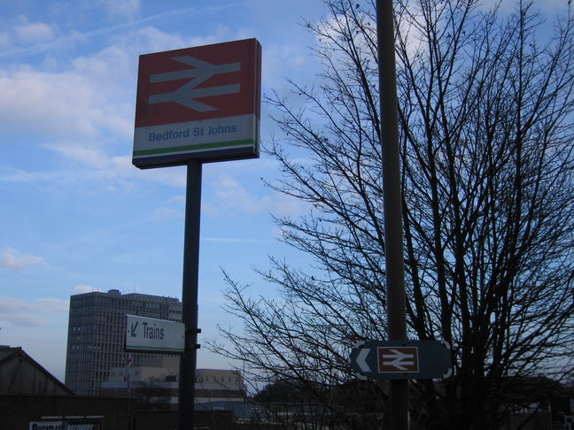 Bedford St Johns is a small station a short walk away from the main Bedford station, and is on the branch line to Bletchley. Access to the platform is down some steps from the road bridge that spans the railway: