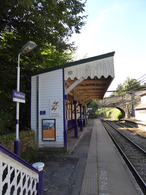 Broadbottom station is on the line to Glossop and still boasts a substantial station building, although one that has been extended multiple times. The enttrance to the station is from Mottram Road to the north of the line, either down these steps:
