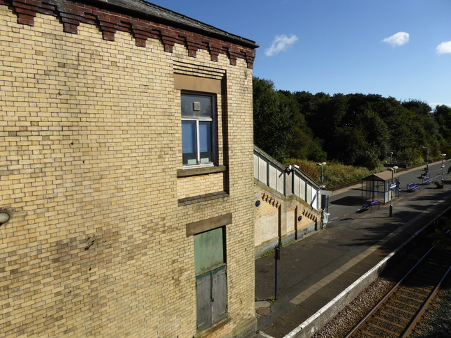 Daisy Hill was the first station of our final day in the Manchester area. It's on the Wigan line in the suburbs of Bolton and was very quiet when we visited... This is the station's front, facing on to Leigh Road:
