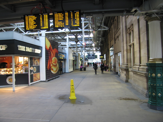 Parallel to platforms 1 and 2 is this route between a small collection of shops and the side of the central station building: