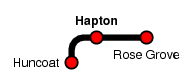 Hapton station was a short walk from nearby Huncoat but the walk was like the station itself: dominated by the noise of the M65 which the line parallels here. Our route took us on a footbridge over the motorway, from where we looked east to see the station: