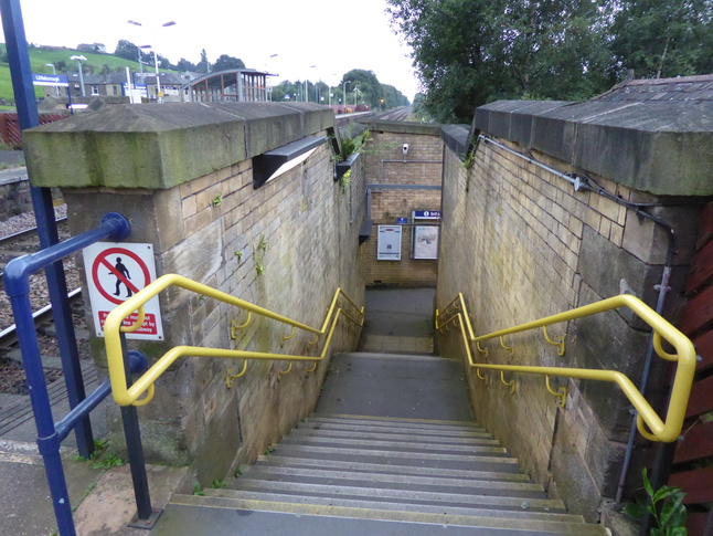 Steps lead down from platform 2 to a subway which connects the two platforms: