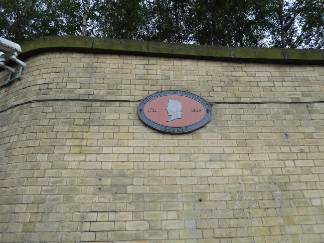 On the opposite wall, a plaque notes that this is George Stephenson Square:
