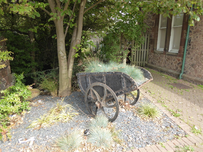 A strange barrow serves as a planter just in the corner of the car park in front of the station building: