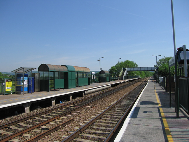 Nailsea and Backwell station is one of those stations which cannot decide what its name is. It's in the village of Backwell and close to Nailsea, and was opened first as Nailsea. As both settlements grew it was renamed to Nailsea and Backwell in 1905, but reverted (presumably for simplicity) to Nailsea in 1974. It's now Nailsea and Backwell again, but not all the signage agrees: