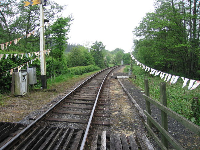 Looking west along the line, with the tiny platform on the right:
