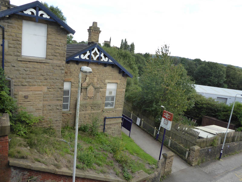 The buildings on the platform 1 side of the station, looking up from the Sheffield Road underpass: