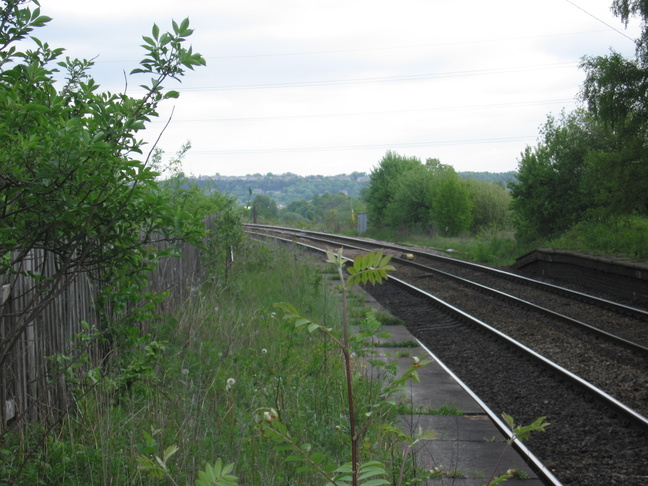Approaching the station along Ravensthorpe Road just to its west, one crosses the line at the point where it diverges. Looking east from the road bridge here, the left hand branch goes to Ravensthorpe station and the right hand branch goes to Wakefield Kirkgate: