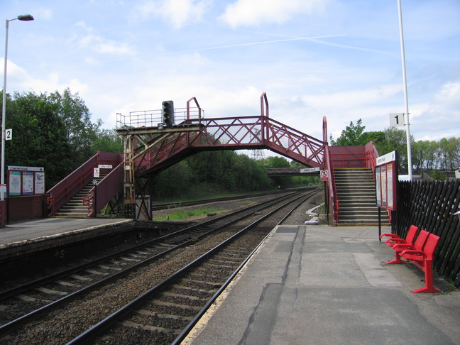 Just north of the line and road bridge, the approach road leads eastwards to the station itself: