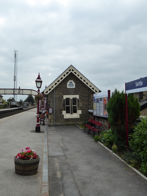 Settle was the end of a short cycle ride from Clapham, with a few hills in, but it was definitely worth it. After fighting off closure in the 1980s, Settle station is well kept and (to judge from what it was like when we visited) well used.