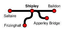 Shipley station forms a junction between the line to Bradford Forster Square, that to Keighley, and those to Ilkley and Leeds. The station buildings and car park nestle in the middle of the triangle formed by the lines.