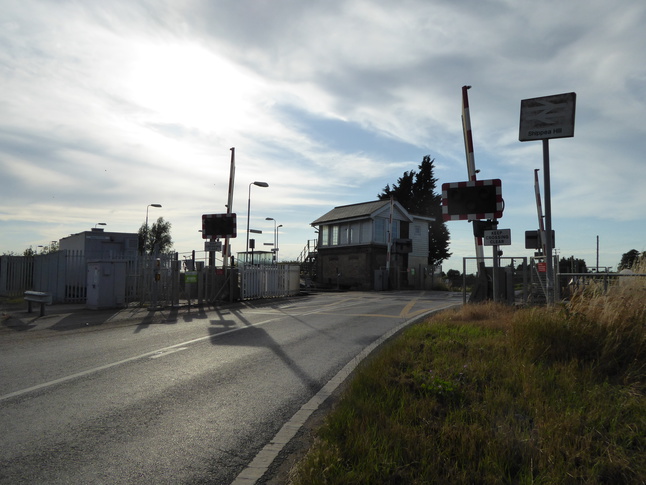 The line crosses the A1101 Mildenhall Road at a level crossing, and when I arrived from the north the barriers were down: