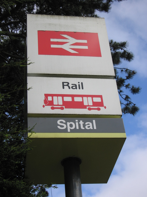 The station building connects to the footbridge which like at Bromborough is a building on the adjacent road bridge. At Spital this obviously used to be an additional station entrance. There's an old door and what used to be railings on the exterior: