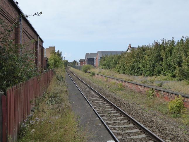 Looking north along the line from the northern end of the platform, with a disused platform clearly visible on the right: