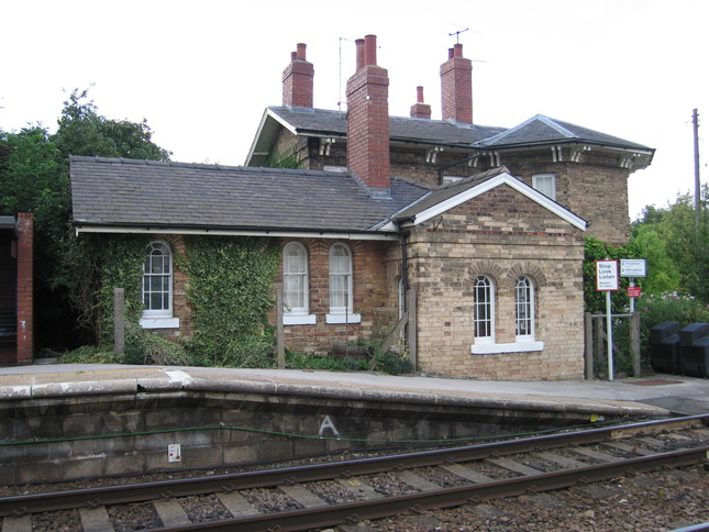 The main station building sits at the eastern end of the Lincoln-bound platform 2: