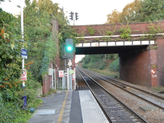 From the eastern end of platform 1 we look east along the line under Station Road: