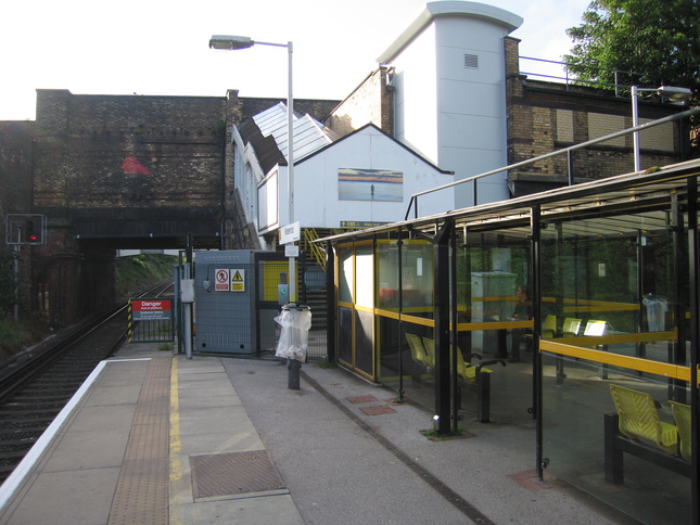 At the bottom of the steps one is funnelled into a shelter in the centre of the single island platform: