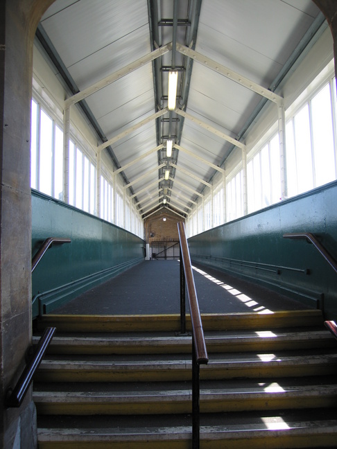 The entrance from that side of the station gives onto another flight of steps leading to the footbridge and then to platform 1: