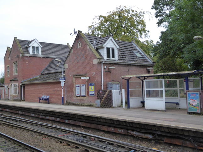 Woodley station was the day's last: a small station in the Stockport area whose station house is now a private house and with a stub of a former junction to Stockport. The line runs approximately north-south here, and the A560 crosses it at the station's north end.