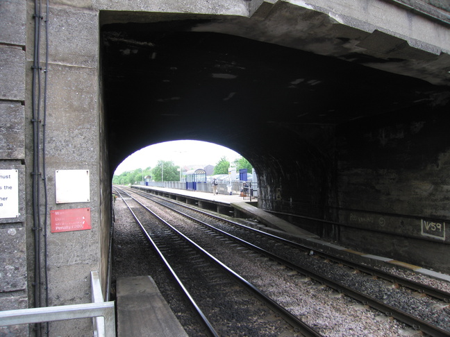 The platforms are on opposite sides of the A432 road bridge, seen here from the north: