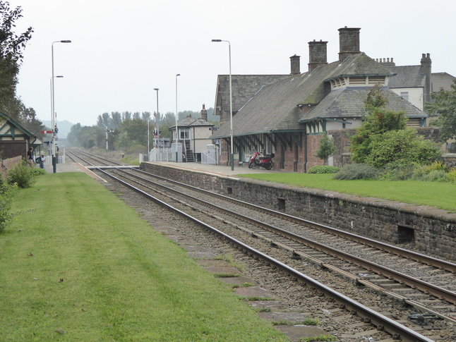 Askam-in-Furness, or just Askam, is on the opposite side of Duddon Sands from Millom, and is a stop on the Cumbrian Coast Line up to Barrow. The station has buildings on both platforms as well as its own signalbox.