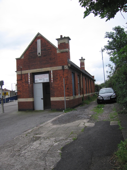 The approach to platform 1 from the level crossing. The building is now used as a hairdresser's: