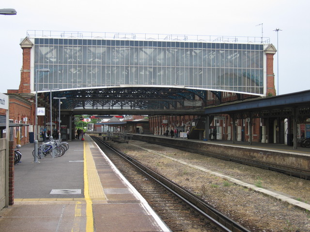 Both a footbridge and a subway join the two sides of the station. Here, the view eastwards from the footbridge: