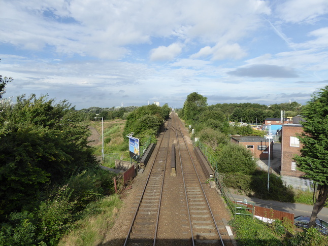 On platform 1 looking west along the line, where it crosses the A560: