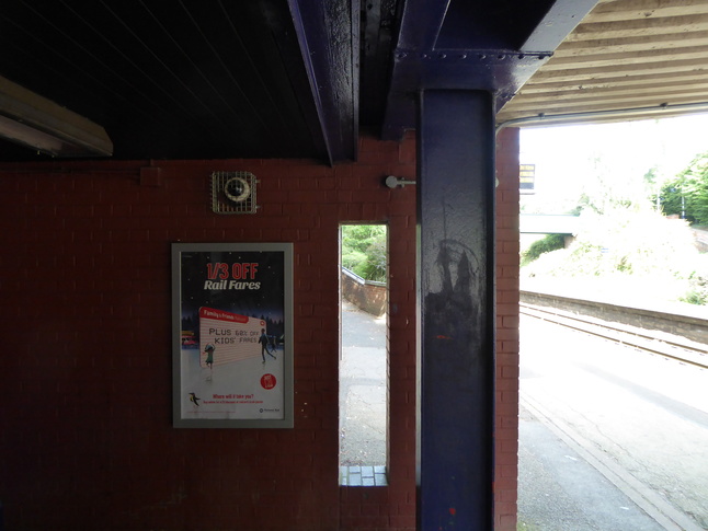 The entrance to platform 2, showing the shelter with its strange vertical slot: