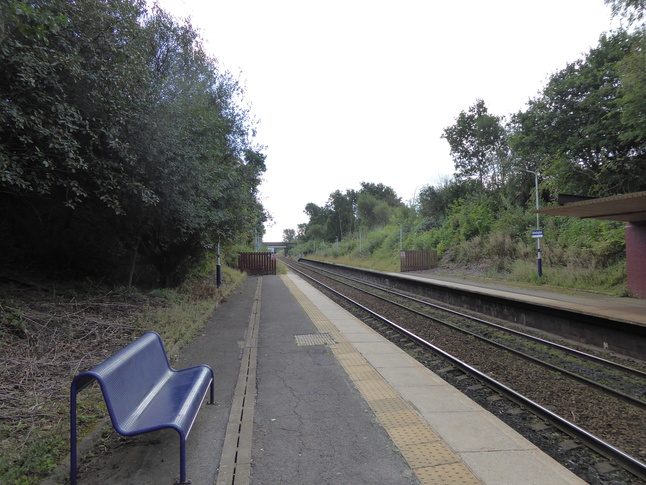 Over at the other end of platform 1 looking at the footbridge and road bridge beyond: