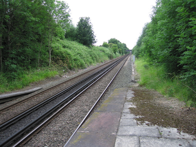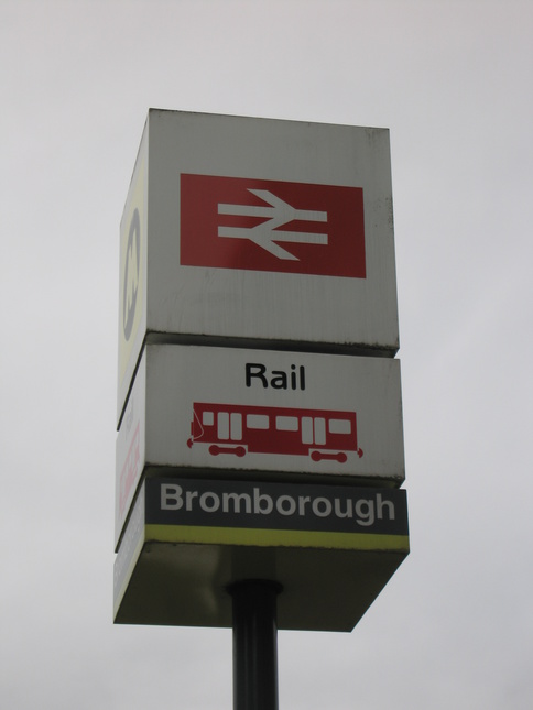 Bromborough is a small town on the west side of the Mersey. The station is on a bridge over the line. The front of the station building: