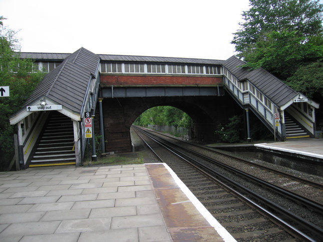 A footbridge runs parallel to the road bridge to offer access to the platforms: