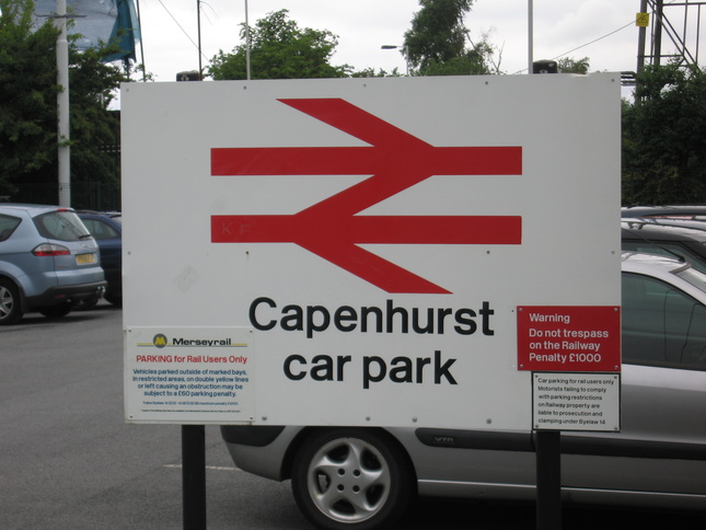 However it is by the footbridge that passengers are urged to cross the line. Looking north at the platforms with the car park on the right: