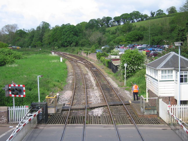 Crediton signalbox. North of Crediton station is the junction where the line out to Meldon Quarry branches from the line to Barnstaple, and Crediton signalbox handles tokens for both: