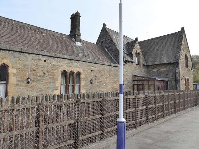 The rest of the rear of the station building, fenced from the platform: