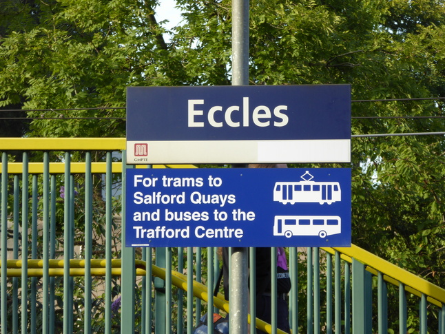 Eccles station serves the town of the same name in Greater Manchester, and has a modern station building which sits on a deck over the railway.