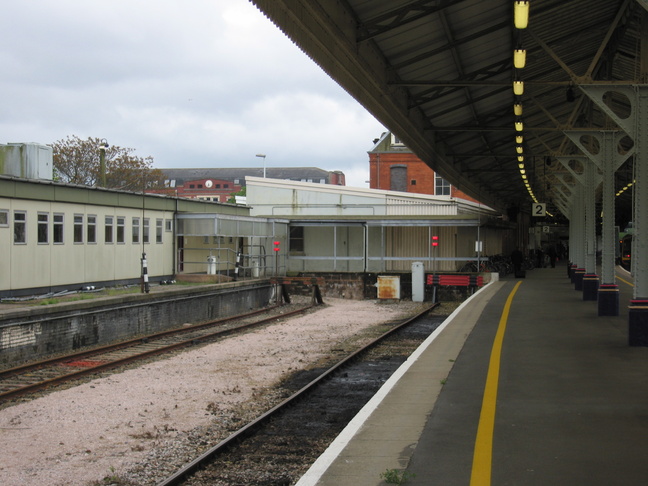 At the northern end of platform 1 is a small bay containing platform 2 and a disused platform edge: