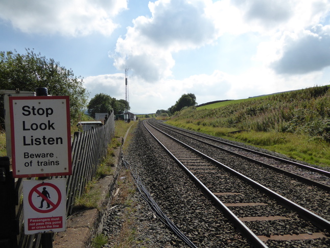 A barrow crossing links the two platforms at the south end of the station. Looking north along platform 2 from the barrow crossing: