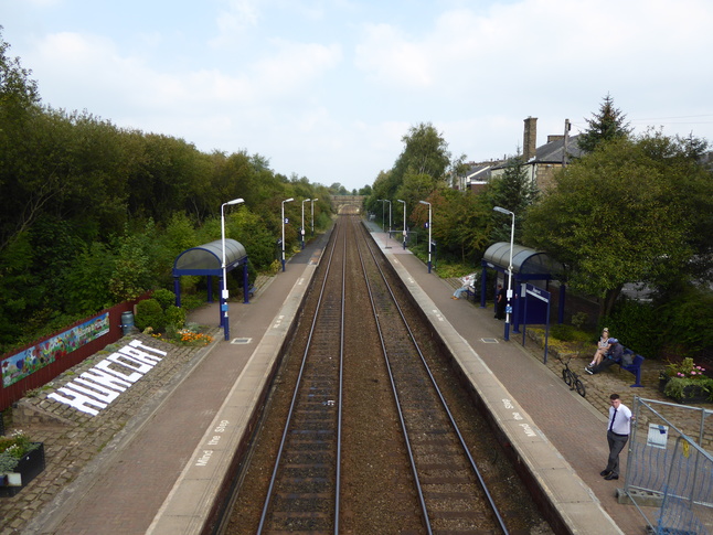 Huncoat is a small station on the East Lancashire Line just northeast of Accrington. For us it was the start of a short walk in the shadow of the M65 to Hapton. The station itself is two platforms spanned by a footbridge with a level crossing at its southern end.