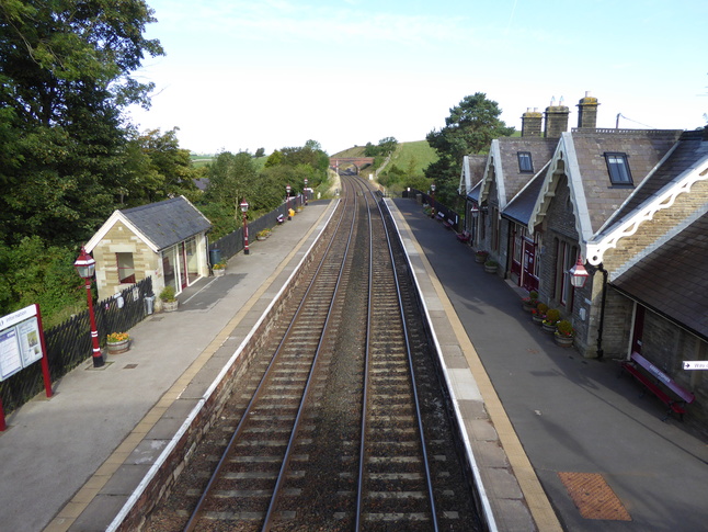 Kirkby Stephen was the first station of a day spent on the Settle and Carlisle line, with some good cycling between stations along the way. Like many stations on the northern section of the line it's on an embankment with quite a steep incline to reach the platforms. This is the rise up to platform 1 for southbound trains; the carpark is along the road ahead and steps lead up on the right: