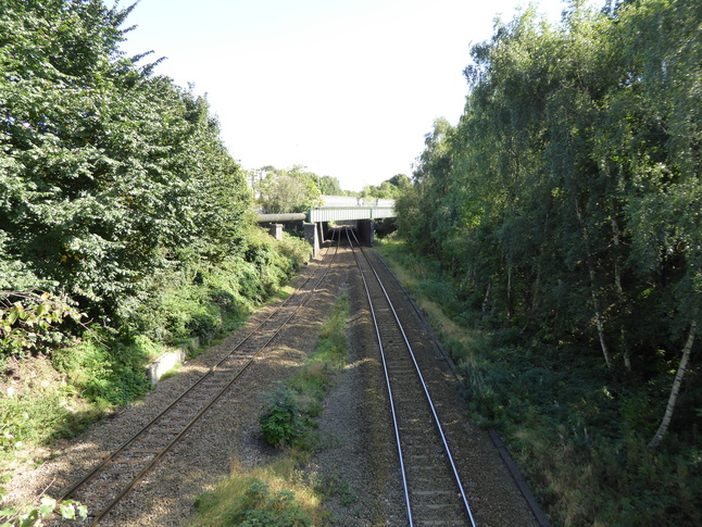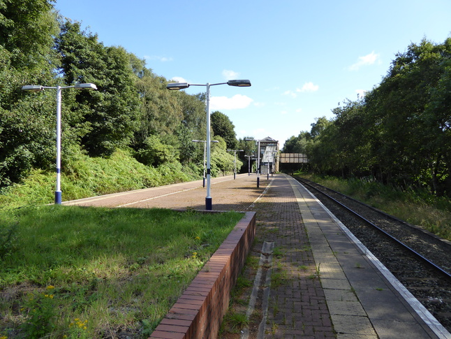 Moorside is relatively little used by comparison with other stations on the line, so it's not surprising that it's lacking in facilities. Here's the station building on the road bridge over the line: