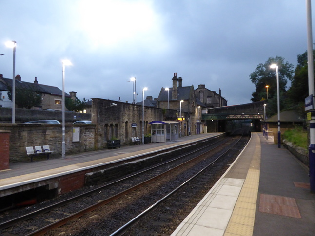 Rain and the gathering darkness made Mossley the last station of the day, but there was still enough light to capture the essence of this station on the Huddersfield line in the foothills of the Pennines.