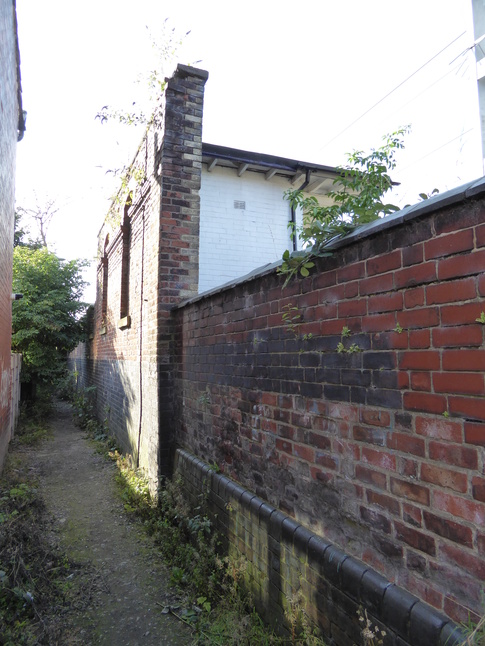Exploring a little more on the south side of the station I found an alleyway giving a view of the rear of platform 1's shelter:
