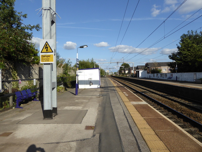 Patricroft station is another station in Greater Manchester on the railway to Liverpool. The line runs on an embankment and bridges the road, and has two platforms. No buildings though, despite signs that there might once have been some.