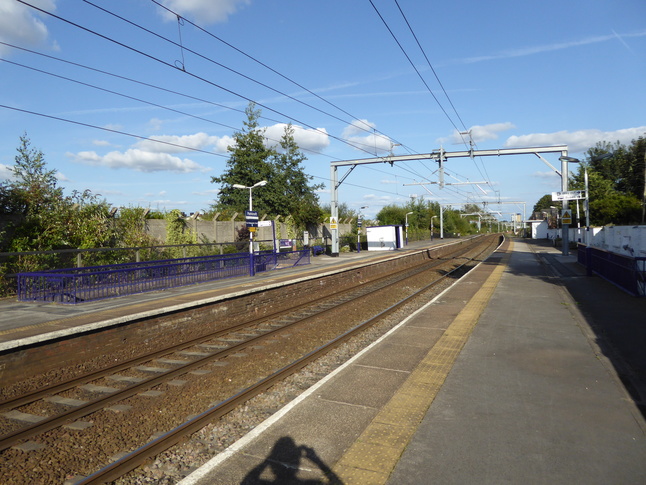 Looking west from the very end of platform 1 as the line crosses the road beneath: