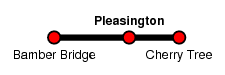 Pleasington was the last station of the day's exploration, and is a small two platform station crossed by a road bridge at the eastern end of the platforms. On the road, looking south: