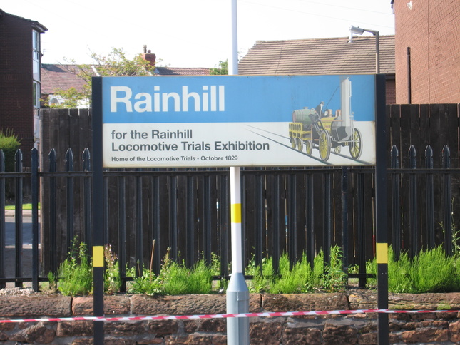 A flower bed just west of the footbridge commemorates the Rainhill trials: