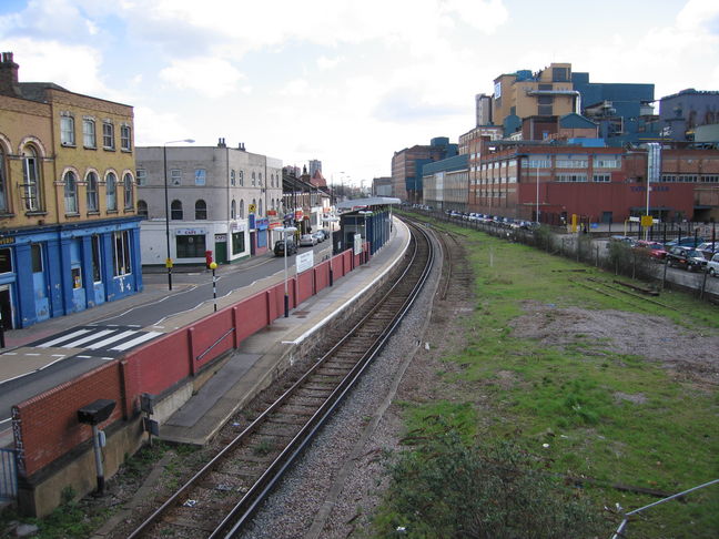 As can be seen from the long shot of the station, an old line branches off here, rather overgrown. (My atlas says this was the original course of the line to Barking.)